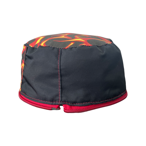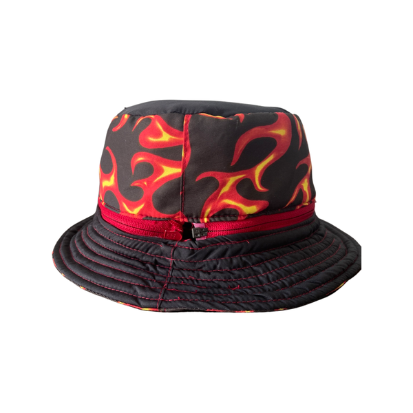 The material for this series is water resistant material with a fire print