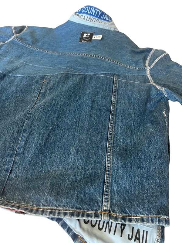 💥 Preorder now available! Each jacket is handcrafted from donated denim scraps and detention center uniforms, turning waste into wearable art. Equipped with a QR Code and NFC chip, share the inspiring story behind this initiative.