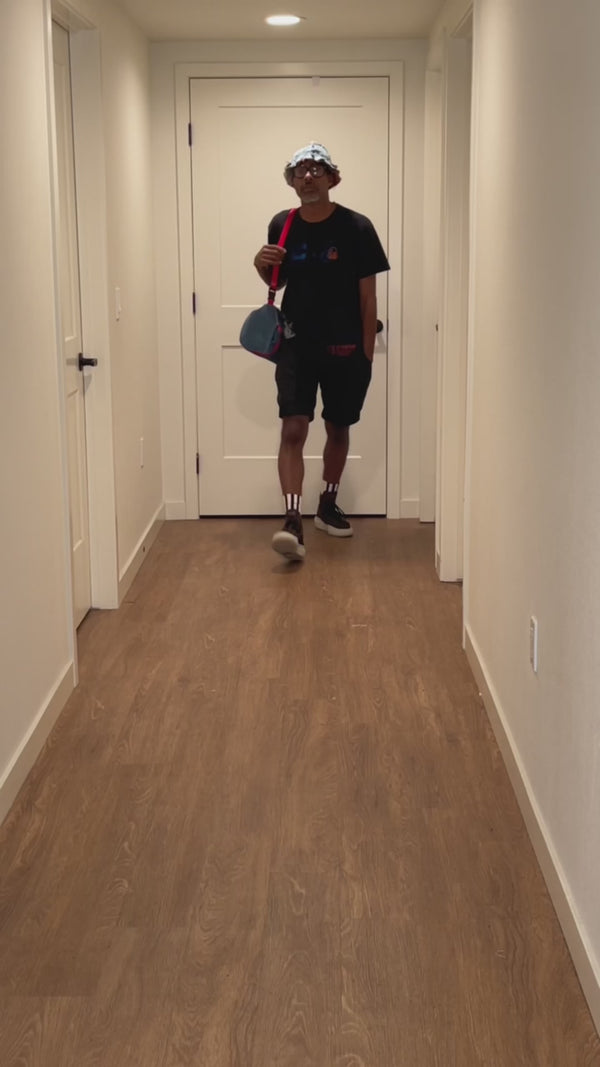 The Retribution Duffle Jacket from Thread Haus is the latest in the R3 Remixed series, blending innovation with impact. Made from upcycled jail uniforms and denim pant legs, this bomber jacket features detachable sleeves, allowing it to switch from long sleeve to short sleeve in seconds.